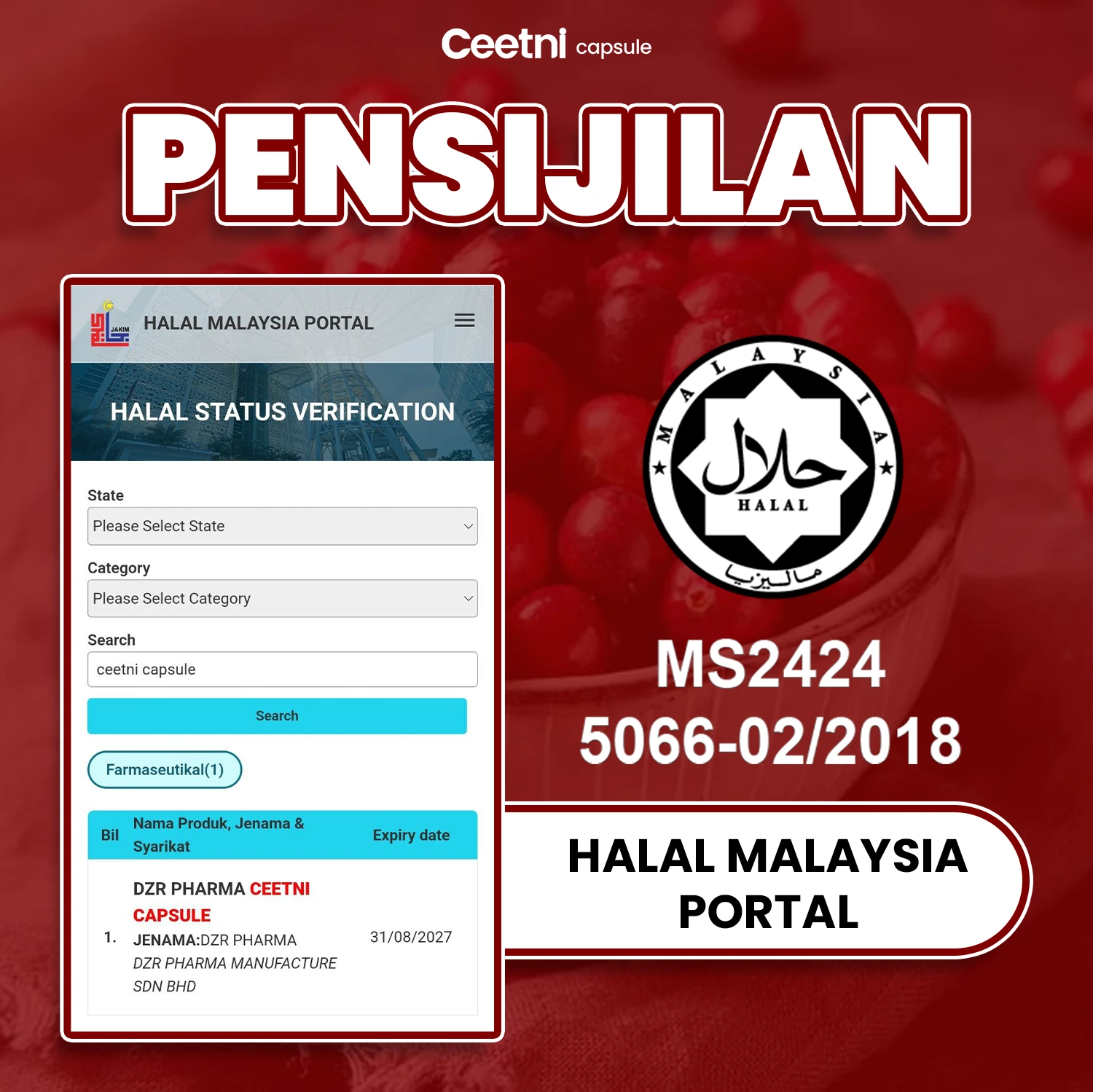 Ya, Ceetni capsule telah mendapatkan kelulusan HALAL dari JAKIM boleh check di website rasmi eHalal JAKIM