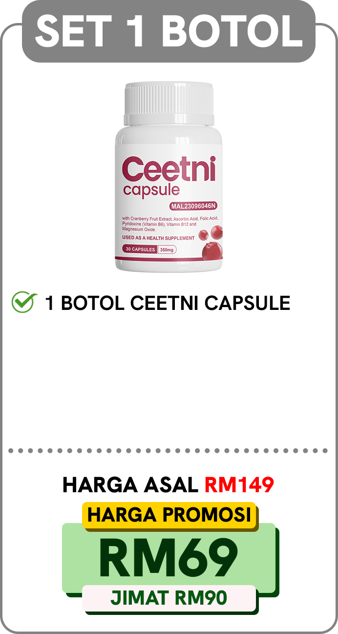 Kami telah membuat satu inovasi baru, di mana Ekstrak Cranberry dan Magnesium dalam bentuk kapsul lebih mudah diserap oleh tubuh dan memberikan kesan yang lebih baik.Produk ini dinamakan Ceetni Capsule, dan ia diformulasikan dengan taraf Medical Grade Supplement (MGS) dan memberikan kesan efektif dengan harga yang lebih berpatutan untuk penjagaan kesihatan.